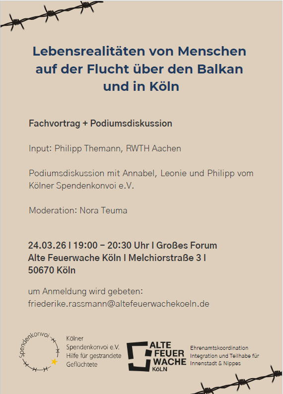 Vortrag & Podiumsdiskussion: „Lebensrealitäten von Menschen auf der Flucht über den Balkan und in Köln“