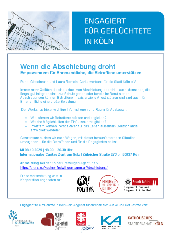 Anmeldung: https://pretix.eu/koelner-freiwilligen-agentur/Abschiebung/