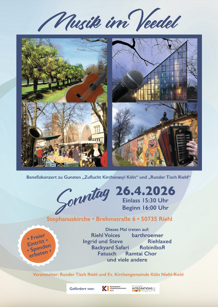 Musik im Veedel: Benefizkonzert zugunsten des "Runden Tisch Riehl" und "Zuflucht Kirchenasyl Köln"