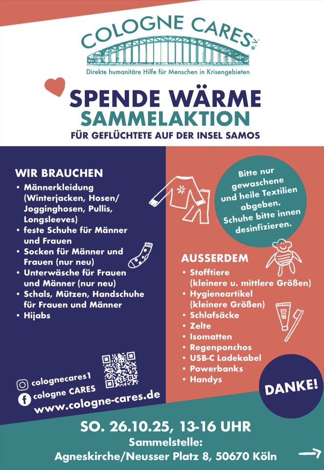 Spende Wärme - Sammelaktion von Cologne Cares e.V. für Geflüchtete auf Samos